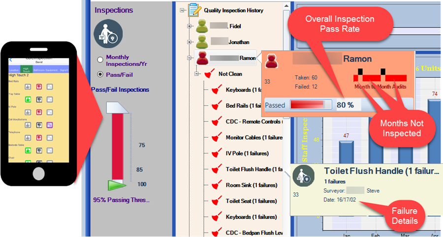 Illustration: Integration with the Dashboard can provide information on the number of inspections, failures, frequency of inspections and more.