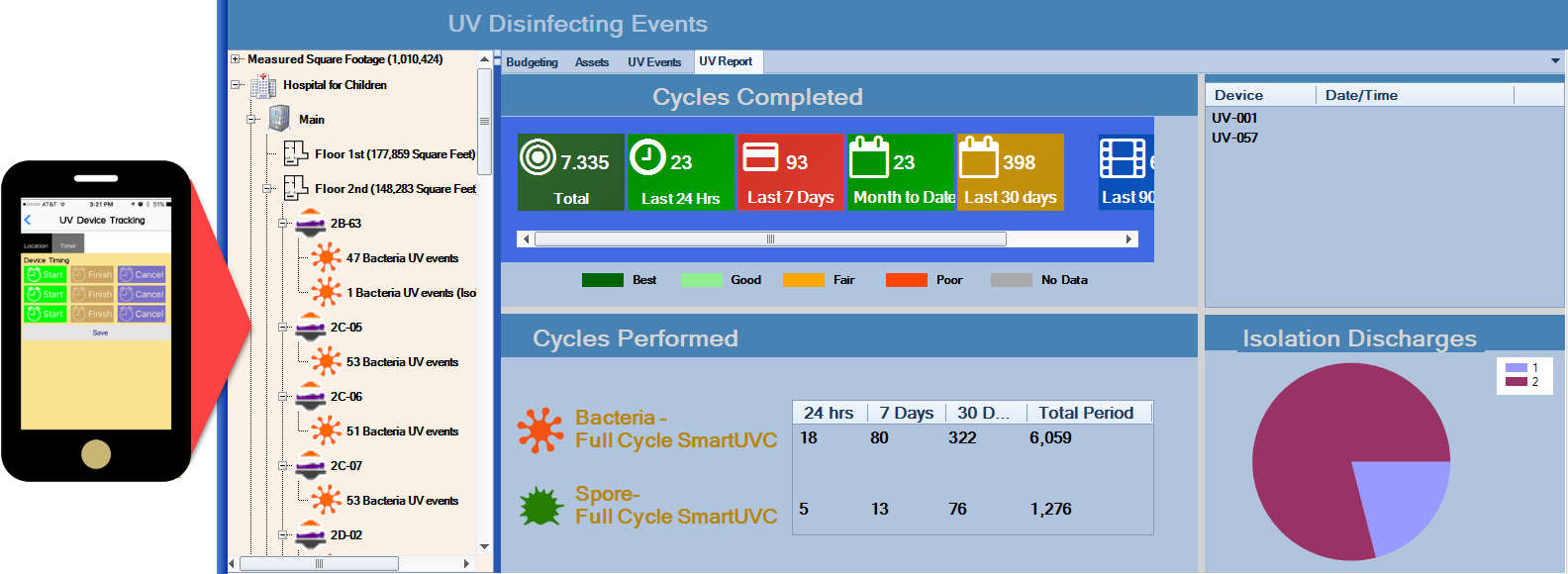 In addition to discovering opportunities to retrain your environmental services workers, the data from HAIvia Mobile can be used to track UV disinfection events and correlated with isolation discharges and more.