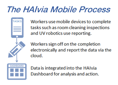 With HAIvia Mobile, automate your inspection, auditing, and disinfection processes to improve infection prevention, eliminate paper forms and transcription errors and cut inspection costs. And adding HAIvia Dashboard can turn your static inspection data into meaningful, actionable opportunities to identify challenges and take corrective actions. Integrating the application data with the HAIvia Dashboard does not just report data, it offers action and the opportunity to improve Value-Based Purchasing Incentives.