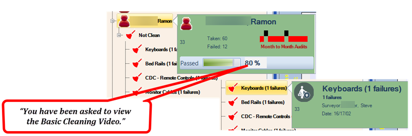 Illustration: The data can be “actionable” and housekeepers can automatically be assigned to corrective action such as retraining through our online Learning Management System.
